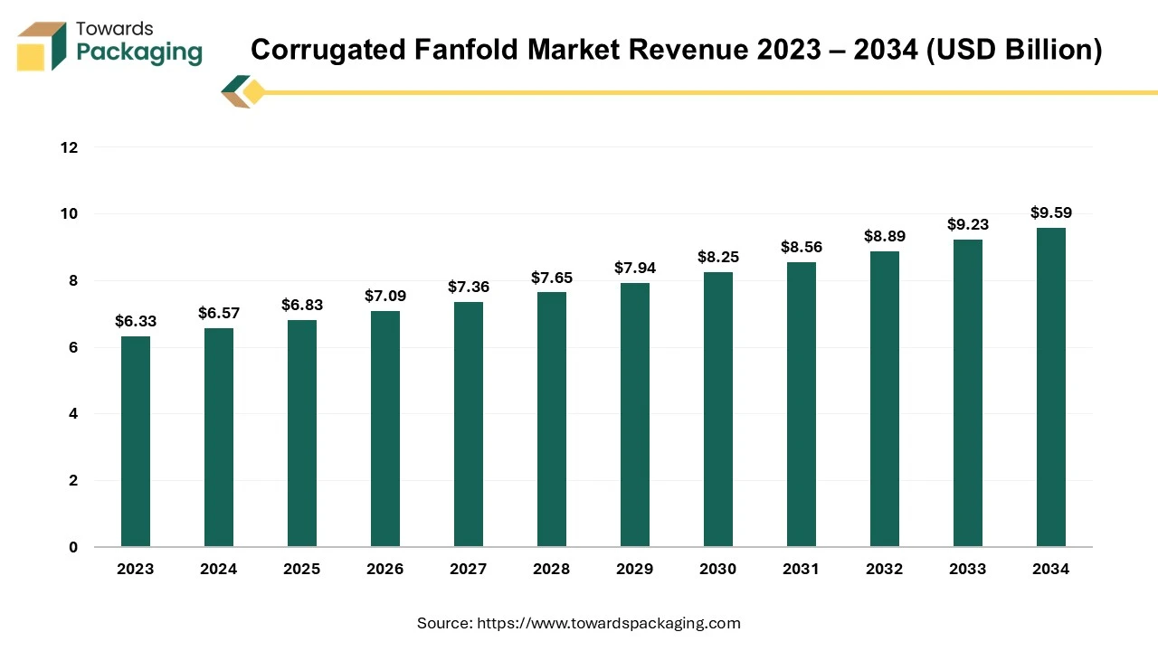 As reported by Towards Packaging experts, the global corrugated fanfold market is anticipated to rise from USD 7.09 billion in 2026 to approximately USD 9.59 billion by 2034, with a CAGR of 3.85% from 2025 to 2034.